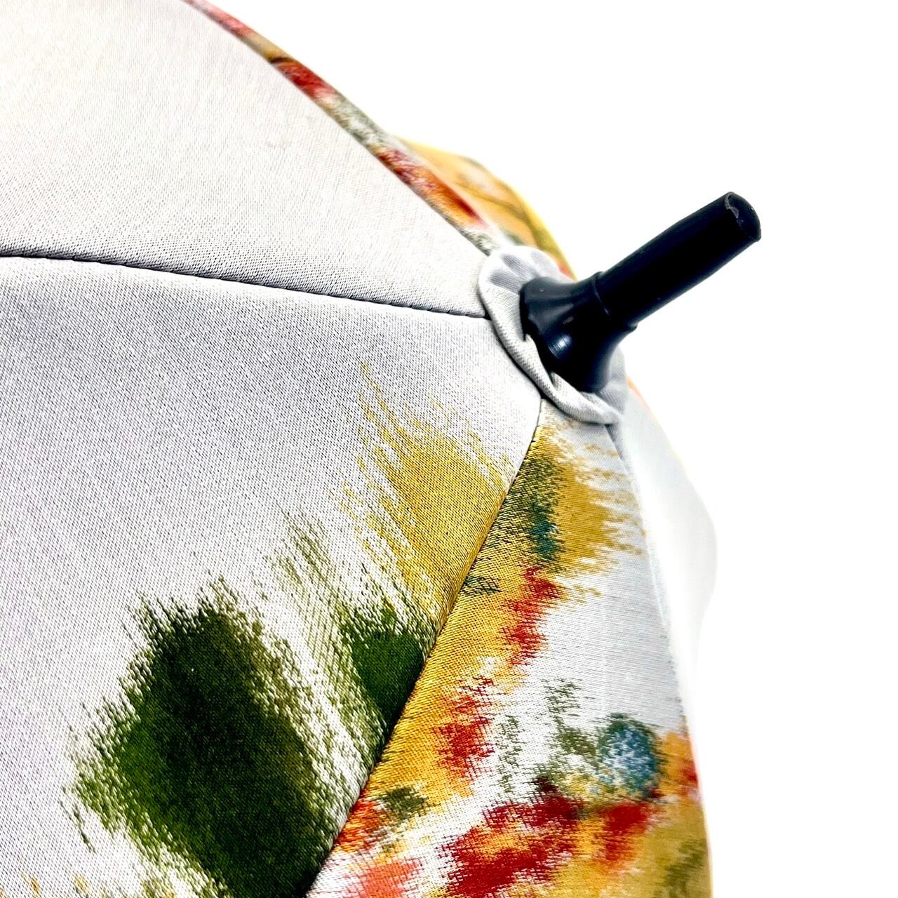 ※傘生地を使用しているため生地は水を弾きますが、パーツや縫製の都合上、通常の長傘と同等の撥水機能を保証するものではございません。あくまでも「傘のインテリア小物」となりまので、その点ご理解いただき、お取り扱いをお願いいたします。